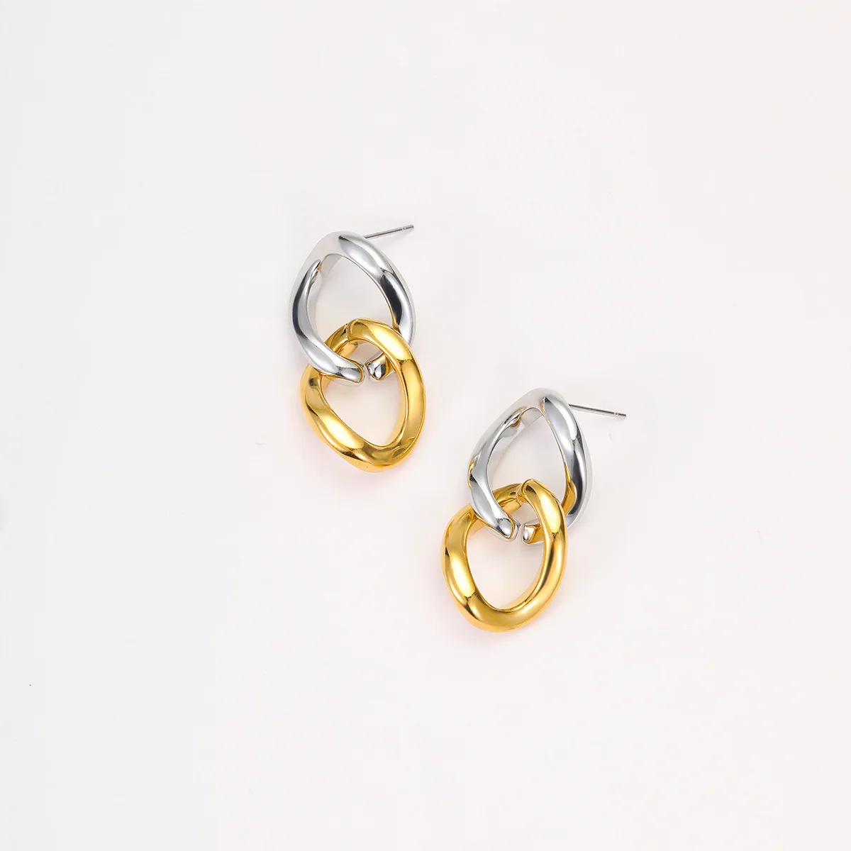 Ars Two-Tone Stud Earrings, featuring gold plating and stainless steel, with a stylish dangle drop design for women who love minimalist everyday accessories.