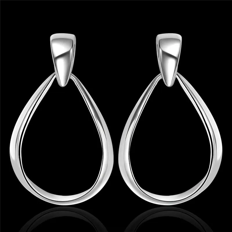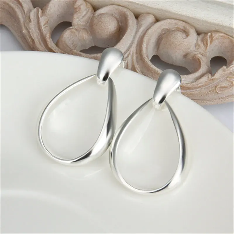 925 Sterling Silver Charm Fine 36MM Oval Water Drop Earrings for Women