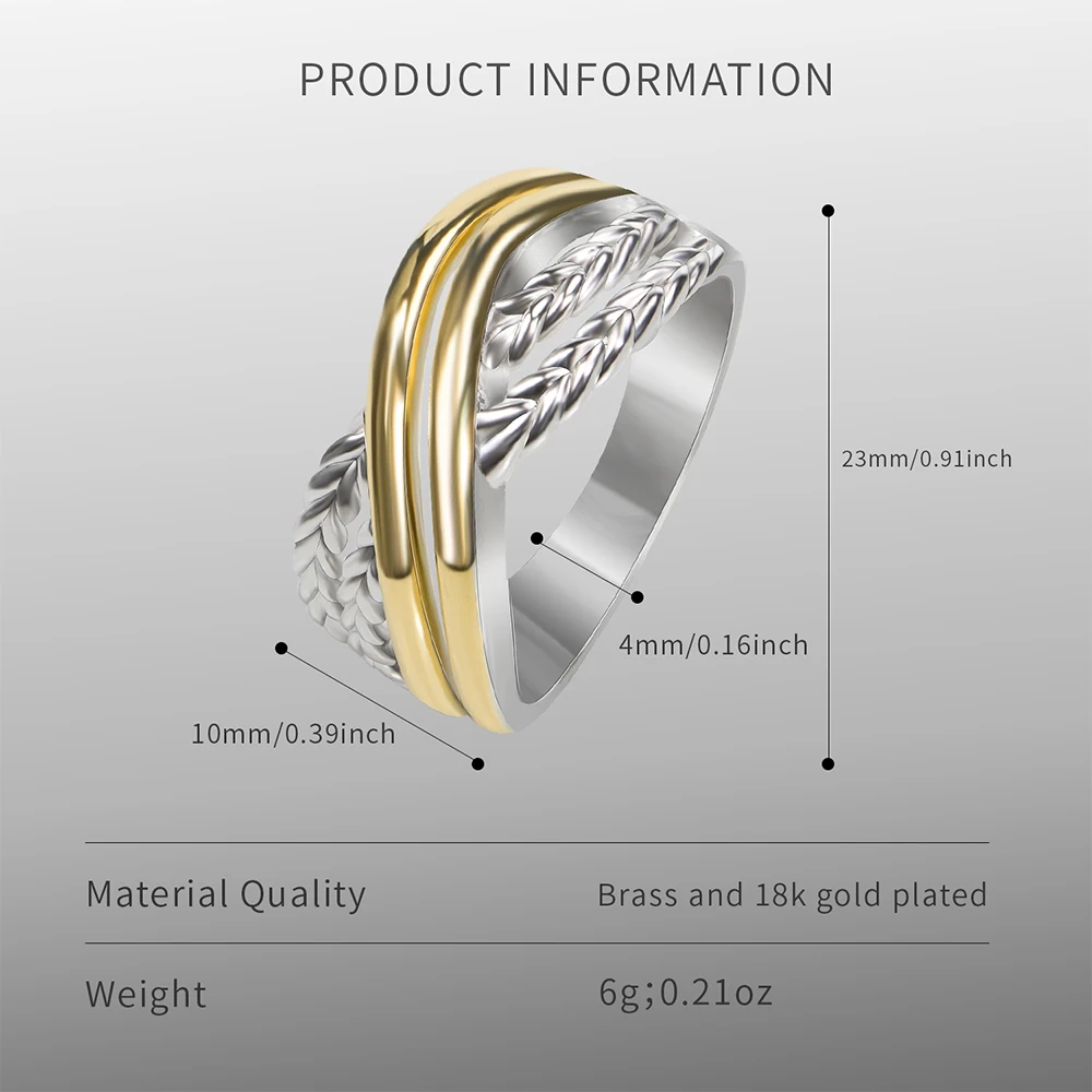 18k gold-plated double crossover band wheat ring, a timeless piece of women’s jewelry perfect for birthdays, holidays, or any special occasion.