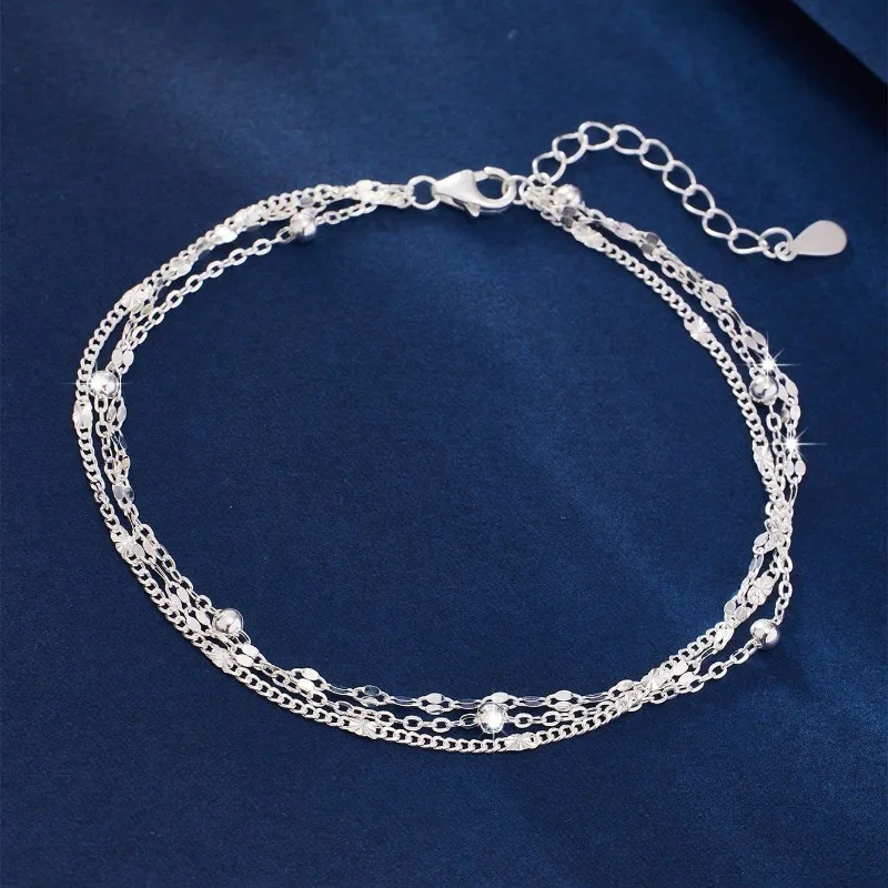 Sparkling 925 sterling silver chain bracelets for women, featuring a luxurious and elegant three-layer geometric bead design, perfect for parties, weddings, and other special occasions.